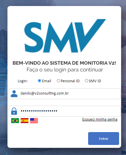 Para fazer login no SMV acesse a pagina: https://smvv2.com.br/